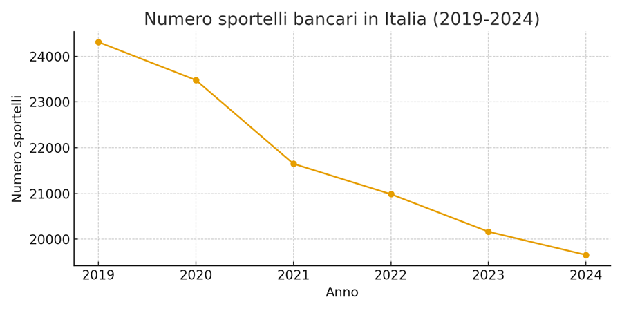 Complice la crescente diffusione di servizi digitali, le banche hanno progressivamente ridotto il numero di filiali, ottimizzando i costi operativi e adattandosi alle nuove abitudini dei clienti.